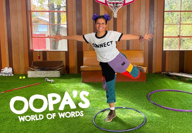 OOPA'S World of Words is a groundbreaking new educational series and early childhood program with a simple focus - words. Together with her friends, OOPA helps children understand the words in their lives, from feelings, to social scenarios, to new vocabulary. Through the use of focal props and interactive movements, children gain a full body understanding of words leading to greater retention.